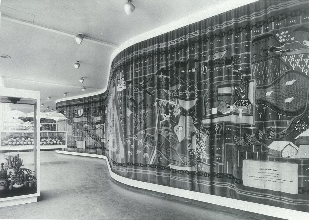 Michael O’Connell created a large wall hanging (56m x 4m) for the Country Pavilion at the 1951 Festival of Britain. It is now in the possession of MERL – Reading University’s Museum of English Rural Life.