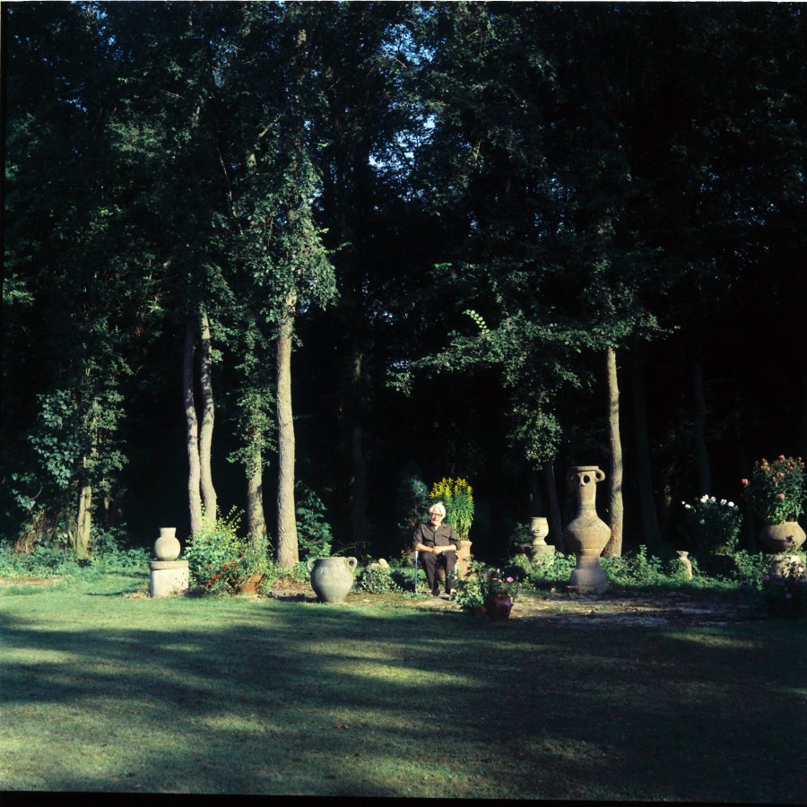 The pots on the other side of the lawn, with Michael